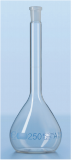 Bình định mức class A, nút nhựa, chữ trắng-200ml. Code: 216783204 (Duran - Đức). Chất liệu: Thủy tinh, nắp nhựa PE. Thang chia vạch rõ dàng, dễ đọc, dễ ghi chú, độ bền cao. Dùng để đo chính xác lượng chất lỏng đặc thù, chuẩn bị hay lưu trữ các dung dịch chuẩn. Quy cách đóng gói: 2 cái/hộp